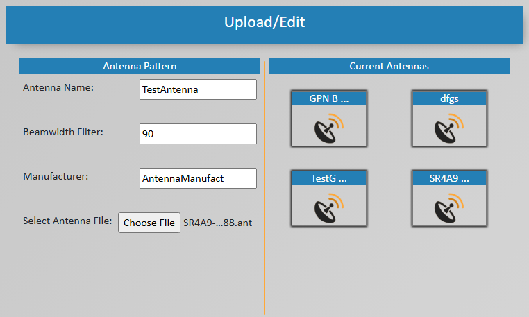 The uploaded file will then be available under the section labeled "Current Antenna's"